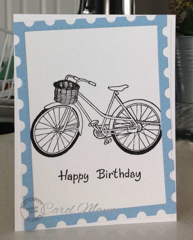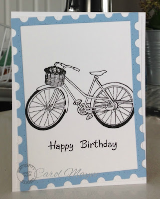 I love this bicycle card and fun sentiment , Carol! Love the way you framed it with the blue panel at an angle !