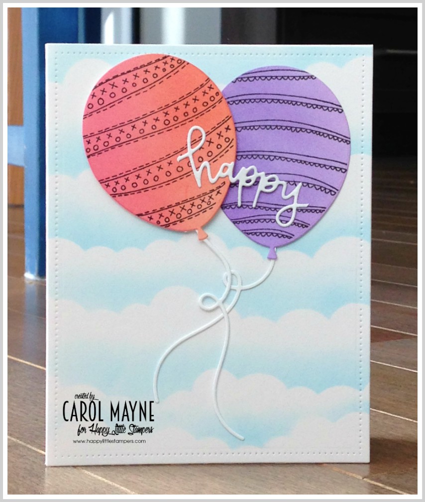 I love those happy balloons soaring in that awesome sky! Wonderful birthday card Carol!