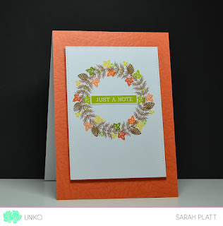 My starting point was team-mate Sarah's wonderful inspiration card where she transformed a Christmas wreath set into a lovely Autumn card through the use of a fall palette.