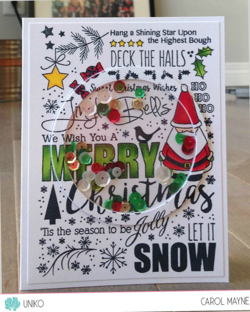 OH MY Word! What a fantastic, eye-catching and ingenious creation using the block Christmas background from Uniko. Adorable shaker idea and just oozing creativity. You've rocked it Carol! x